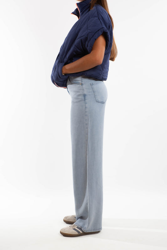 Jean large taille haute – Bleu délavé