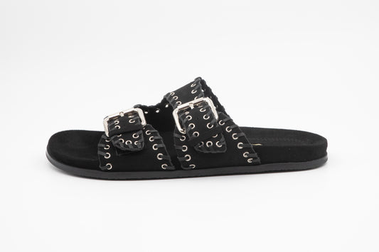 Mules noires en suédine cloutées